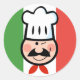 Ein blinzelnder Koch vor einem Kreis, der die Flagge von Italien enthält.