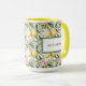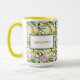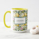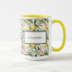 Elegante Tasse im mediterranen Stil mit einem frischen Aquarellmuster aus sonnengeküssten Zitronen, rosa Blüten und üppig grünen Blätter auf einem knusprigen, weißen Hintergrund. Das Design verfügt über ein gerahmtes, raffiniertes Label, das mit Ihrem Namen personalisiert ist, was es zu einer stilvollen und praktischen Wahl macht. Diese Tasse ist perfekt für Liebhaber von italienischem Charme, Amalfi-Küstenstreifen und Blumenzitrusdesign. Sie ist sowohl ein funktionales Bürostück als auch ein schönes Accessoire.
