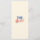 Ein buntes Retro funky modernes, gelb und blau und rot Hochzeitsdinner Menü. Das Design ist schick, Vintag, leicht gelb und rot. Die Schrift ist fett. Perfekt und passt gut zu der ganzen Suite.