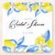 Elegante italienische Zitrone und blaue Blumen Brautdusche Einladung mit Skript-Schriftart. Ideal für Sommer-, Garten- oder Amalfiküste-Veranstaltungen. Editierbar und stilvoll!