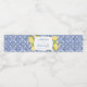 Stilvolles Design der Wasserflaschen mit Vintagem blau-weißem Fliesenmuster und Aquarelllemonen, hier mit den Namen der Paare gezeigt. Um Textfelder hinzuzufügen oder zu löschen, klicken Sie auf "Weitere Anpassung" unter den Textanpassungsfeldern.