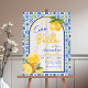Italienisches Brautparty oder Junggeselinnen-Abschied-Schild mit einem schicken Bogen-Rahmen und mediterranen Amalfi-Kacheln in Blau, Weiß und Gelb mit Zitrusfrüchte-Zitronengelato-Illustrationen, die an einen Sommerurlaub in Süditalien erinnern. Bitte schreiben Sie mir, wenn Sie Hilfe bei der Anpassung benötigen.