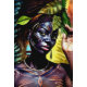 "Itáyara" bemalt Fern - Frauen in Amazonien. In lebhaften, bunten Körperfarben verziert, fügt sich ihr surreales Bild nahtlos mit den üppigen Farnen des Waldes zusammen, ihre wilde amazonische Schönheit spiegelt die ungezähmte Natur wieder, als ob sie selbst aus der Vegetation um sie herum hervorgegangen wäre. Ihr Blick ist fast zauberhaft.