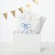 Celebrate the arrival of a little boy with this adorable baby shower favor bag adorned with a charming blue ribbon. Personalize it with your own special message to make it the perfect finishing touch to your baby shower celebration.