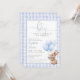 This charming baby shower invitation features a cute little baby bunny holding balloons and a blue gingham background. Designed by Thisisnotme©
