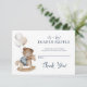 This diaper raffle enclosure card features a teddy bear, rocking horse, and balloons.