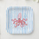 These adorable baby shower paper plates feature charming blue watercolor stripes and a pink octobpus. Complementary items available.