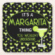 Stylish drink's coaster with a green and black cocktail design. The design reads "It's A Margarita Thing You Wouldn't Understand" and a margarita cocktail glass. In the background is a cute margarita pattern, with cocktails and slices of lime. Perfect for bartenders, mixologists, cocktail bars, and anyone who loves cocktails.