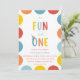 Celebrate a big milestone with a “It’s Fun To Be One” colorful first birthday invitation that sets the tone for an unforgettable party! Bright, colorful design elements and cheerful primary colors make this invitation perfect for a joyful first birthday celebration. Playful typography and a fun party vibe help create excitement for family and friends as they gather to celebrate your little one turning one. Ideal for boys or girls, this happy, modern design pairs perfectly with cake, balloons, and lots of smiles. Shop the rest of the collection for corresponding products like napkins, enclosure cards and more to create a cohesive party!