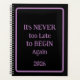 'It's NEVER too Late to BEGIN Again 2026' phrase Planer