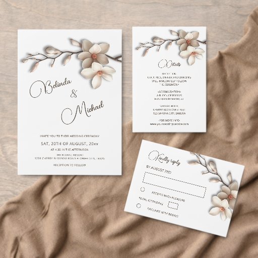 Magnolia 3D Flowers Calligraphic Script WeddingDesignt von Nina Baydur