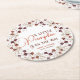 Add a delightful touch to your baby shower tables with these charming round paper coasters, featuring the sweet phrase "A Little Pumpkin Is On The Way." Adorned with a beautiful circular wreath of delicate fall florals in rich burgundy and cream tones, these coasters perfectly complement your autumn-themed celebration. Customize them with the parents' names to create personalized table decor or unique favors that protect surfaces and enchant your guests.