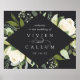 Unsere Hochzeitskollektion Ivory Bloom Aquarell mit zartem Aquarell, Eukalyptus-Blätter, grünem botanischem Blattwerk und Blume mit weißer und elfenbeiniger Tortur. Dieses elegante Begrüßungsschild mit Ihren Namen und Ihrem Hochzeitsdatum in einem länglichen, geometrischen Rahmen mit Diamanten eingebettet.