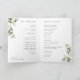 Unsere Hochzeitskollektion Ivory Bloom Aquarell mit zartem Aquarell, Eukalyptus-Blätter, grünem botanischem Blattwerk und Blume mit weißer und elfenbeiniger Tortur. Personalisieren Sie diese eleganten gefalteten Hochzeitsprogramme mit Ihren Zeremonie Details und Hochzeitsfeier.