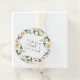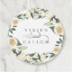 Unsere Hochzeitskollektion Ivory Bloom Aquarell mit Blütenfarben, einem Kranz mit zarten Aquarellpflanzen, Eukalyptusblättern, grünem botanischem Blattwerk und Blume mit weißer und elfenbeinfarbener Tortur. Personalisieren Sie diese runden Tags mit Ihren Namen, verbunden mit einem dekorativen Skriptakzent. Ideal zum Versiegeln von Einladungen oder Gunst-Taschen/Schachteln.