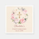 A soft blush ivory background, decorated with watercolored pink and ivory flowers in a wreath and a golden cross. Personalize and add the name and date.