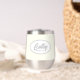 Gift your wedding bridesmaid with this trendy and personalized, stainless steel wine tumbler with her name in stylized, grey script inside a white, oval design. Background color is an ivory color. Perfect for a bachelorette party as well! Personalize your wine tumbler by editing and replacing bridesmaid name with desired name. Available in many, popular bridal party color schemes.