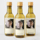 Diese Mini-Weinflaschen zeichnen sich durch ein schlichtes, modernes und minimalistisches Design aus. Ihr Foto ist auf einem elfenbeinfarbenen oder cremefarbenen Hintergrund gehalten und mit der Beschriftung "Liebe & Dank" sowie den Namen des Ehepaares und dem Hochzeitstag versehen. Es gibt auch Platz für die Art des Weins oder andere Flascheninhalte. Ideal, um besonderen Gästen zu danken.
