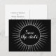 Eleganter und eleganter Deko Retro Save the Date Postcard in Elfenbein mit einem Deko-Ornamentik-Sonnenburstdesign. Einfach zu anpassen, fügen Sie einfach Ihre Hochzeitsdetails in den Textfeldern zur Verfügung gestellt. Klicken Sie auf "Anpassen", um weitere Personalisierungsoptionen zu erhalten. HINTERGRUNDFARBE KANN IN JEDE FARBE ANGEPASST WERDEN.