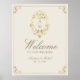 Welcome your guests in timeless style with this elegant ivory and gold baroque wedding welcome sign. Featuring a refined monogram crest, delicate gold ornamental details, and soft neutral tones, this design is perfect for classic, formal, and luxury wedding celebrations.