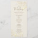 Dieses elegante Hochzeitsprogramm besticht durch zarte goldblütige Illustrationen auf sanften Elfenbeinhintergrund mit modernen Drehbüchern und Serifen-Schriftart. Ideal, um Ihre Zeremonie-Bestellung und die Details der Hochzeitsfeier in einem formellen und raffinierten Layout aufzulisten. Eine zeitlose Ergänzung zu Ihrem klassischen Hochzeitstag.
