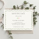 Whimsical and chic. This lovely white & sage green wedding save the date card features a lovely blush pink watercolor floral accents and couple photo, alongside a contemporary set of fonts. Included at the back is optional text.