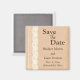 Die illustrierte Spitze schmückt diesen lichtdurchfluteten Magneten und speichert den Datums-Magneten. Es ist Teil einer kompletten Hochzeitskollektion. Es ist auch mit weißer Spitze erhältlich.