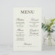 Elevate your reception tablescape with this elegant Ivory Minimalist Boho Wedding Menu Card. This formal, single-sided menu (5.5" x 8.5") offers a substantial size perfect for detailing every course from Starters and Mains to Dessert and Drinks & Cocktails. The soft Ivory background and the rich, warm Coffee Romance typeface create a sophisticated, neutral aesthetic, ideal for both rustic and formal weddings. The elegant script typography for the category headers adds a touch of classic formality. This Wedding Menu is an indispensable detail that completes your dining experience, ensuring your guests are guided through your thoughtfully planned reception dinner with style.