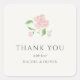 This stylish wedding thank you sticker features couple names and date, alongside watercolor floral rose illustration and contemporary text, against a chic ivory background.