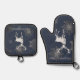 Ivory Reindeer Weihnachten | Blau Ofenhandschuh & Topflappen-Set