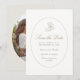 Diese cremeweiße und taupefarbene Sand-Hochzeit-Einladungskarte zum Speichern des Termins enthält ein zeitgenössisches Set an Schriften, eine florale botanische Illustration und ein Foto des Paares in einem ovalen Rahmen auf der Rückseite. Dieses Design verbindet moderne Eleganz mit minimalistischer Chicness.
