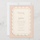 Introduce your event with a touch of timeless sophistication using this beautifully shaped stationery design. The invitation features a unique, die-cut scalloped edge that adds a soft, vintage-inspired wave to the silhouette, distinct from standard rectangular cards. The background is a soft, pale ivory or blush beige, providing a neutral and clean canvas for your typography. A double-line gilded border traces the interior, mirroring the rectangular shape and adding a subtle hint of metallic luxury without overpowering the minimalist aesthetic. This versatile and classic design is a flawless choice for a traditional church wedding, a sweet sixteen birthday party, or a charming bridal shower brunch. You might also select this understated style for a baby shower announcement, a sophisticated tea party, or a golden anniversary celebration where the focus is on elegant typography.