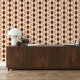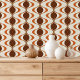 Das Design vereint Bräune, Dunkelbraun, Terracotta-Orange und Elfenbeinfarben in einem Ogee-Wave-Stil. Die Ogee-Kontur ist durchsichtig und erinnert an ein ausgedehntes 'S', das ein lebendiges und rhythmisches visuelle verleiht. Das Muster strahlt Eleganz und Raffinesse aus, mit einer Mischung aus eigenartigen und avantgardistischen Elementen. Es ist sowohl für zeitgenössische Chic- als auch für zeitlose Vintage Ästhetik geeignet, was es für verschiedene Geschmäcker und Persönlichkeiten vielseitig macht. Es bietet eine breite Palette an modernen Wohngestaltungen und ist ideal für alle, die einen besonderen Charakter in Räume wie Master- oder Gästezimmer, Küche, Wohn- oder Familienzimmer, Uni-Studiowohnung, Appartement oder Appartement vermitteln möchten.