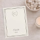 A timeless ivory colored notebook designed with a refined monogram and delicate warm taupe wreath details.