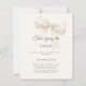 A soft ivory colored background, decorated with a bow. Personalize and add a name and party details.