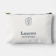 Chic and elegant with minimalist aesthetic. This lovely simple accessory pouch features a contemporary set of fonts in midnight blue and wedding couple monogram against a soft ivory background.