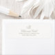 These lovely ivory white return address labels feature a botanical illustration, couple names and address in a contemporary set of taupe fonts and calligraphy script.