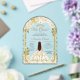 Eleganter goldener Bogen mit blumengeschmücktem Prinzessenkleid für die 15. Geburtstags-Quinceanera-Einladung.