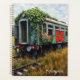 An old long abandoned vintage train off the tracks covered in graffiti and ivy while nature reclaims her space. You add your name in the personalize area.