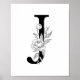 Elegantes J-Brief-Monogramm-Poster mit Blume und Leben. Schwarz-Weiß botanische Abbildung. Erste Briefposter Kinderzimmer, Schlafzimmer, Teil der Wohngestaltung. Personalisierte Geschenkidee.