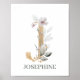 Letter J monogramm floral. Letter J in goldbrauner Textur mit grünen Aquarellfarben Blätter, Blume Blüten und Goldstaub. Personalisiert mit Namen in passendem Schriftart.