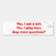 Ja bin ich ein Mädchen. Ja spiele ich Baß Autoaufkleber