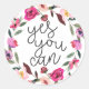 Ja, kann man, inspirierendes Zitat, Boho Blumenros Runder Aufkleber