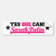 Ja kann sie! Zeigen Sie Ihre Unterstützung für Vizepräsidentenkandidaten Sarah Palin mit diesem sportlich-ähnlichen Autoaufkleber!
