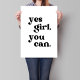 Mit der druckbaren Wandkunst "Yes Girl You Can" können Sie jeden Raum in eine Quelle der Ermächtigung und Positivität verwandeln.