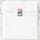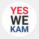 Ja Wir Kam lustige moderne rot-blaue Typografie weißes demokratisches Party lustige coole Aufkleber, Etiketten, Umschlag Aufkleber. Einfaches minimalistisches modernes Design. Stimme für Kamala Harris