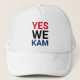 Ja Wir Kam minimalistisch rot und blau Typografie weiß demokratischen Party lustige coole LKW-Hut. Einfaches minimalistisches modernes Design. Stimme für Kamala Harris