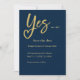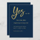 Ja Wir treiben marineblaue Hochzeit Gold speichern die Dattelkarte Dieses elegante blaue und goldene Hochzeitsdesign enthält den Satz "Ja, das tun wir!" mit dem Wort "Ja", das in einem romantischen Goldskript geschrieben ist - das durchdringende Y enthält eine Herzform, die Liebe und Einheit symbolisiert. Das minimale schicke Layout verbindet kühne, moderne Typografie mit zeitlosen Goldakzenten und schafft einen luxuriösen Look, der sich perfekt für feierliche Veranstaltungen, Krawatte in Marineblau oder Hochzeiten im Abend eignet. Die Namen werden in anmutiger Kalligraphie angezeigt, was dieser edlen Schreibwarenhandlung eine Touch persönlichen Charmes verleiht. Dieses Design ist Teil einer individuell anpassbaren Hochzeitskollektion und wurde mithilfe von KI sorgfältig erstellt, um die Kreativität zu unterstützen. Ich verdiene eine kleine Provision durch Einkäufe, die über soziale Medien-Verweislinks getätigt werden.
