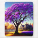 Außerhalb eines alten Bauernhauses ist ein großer lila, blühender Jacaranda-Baum