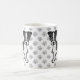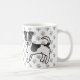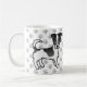 Desteis originelle Cartoon-Illustration eines Schwarz-Weiß-Jack Russell Terrier Rasse Hund. Der Hintergrund weist ein Muster grauer Hundepfoten auf.